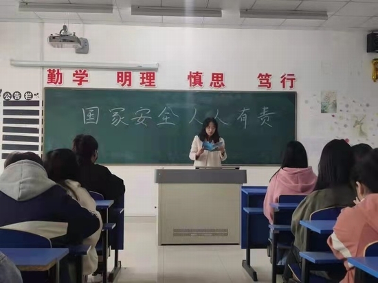 机关党总支各党支部利用支部大会组织学习国家安全教育相关内容;学院各系组织收看“千万学生同上一堂国家安全教育课”网络公开课,积极参与国家安全知识线上竞答;通过列举中国近代屈辱史相关事件以及当前危害国家安全相关案例素材召开主题班会,对学生进行爱国主义和国家安全教育学习;通过公众号、展板、海报、电子屏等载体,增强宣传教育感染力,营造维护国家安全的浓厚氛围。此外,学院还通过反邪教警示教育宣传、学生宿舍安全检查、印制防范电信诈骗手机贴等方式,增强防范和抵御安全风险能力。