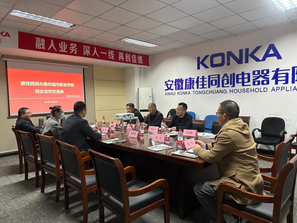 11月22日,校党委委员施向阳率队赴安徽康佳同创电器有限公司洽谈校企合作,就人才培养、产教融合、实习就业等方面工作进行交流探讨。管理与信息学院党总支书记陈兴旺、招生就业处处长朱启来和电商专业负责人胡海敏陪同访企。