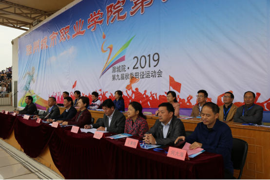管理系2017级酒店管理专业叶文敏、体育教师冯亮分别代表运动员和裁判员宣誓。基础部主任、大会组委会副主任何大海宣读了田径比赛规则。