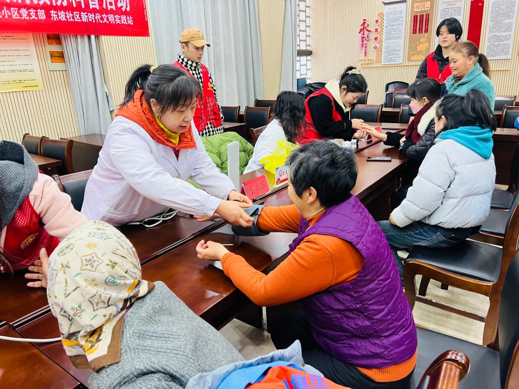 教师活动,引领示范,深化精神内涵。学院教师组成医疗志愿服务队,走进社区为居民进行免费义诊,包括测量血压、血糖,健康咨询等服务。