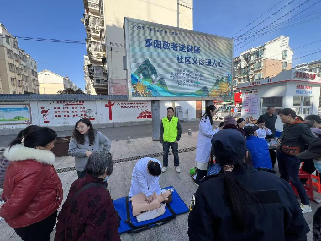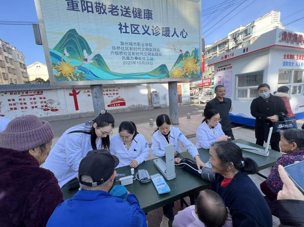 岁岁重阳,情暖人心。为弘扬中华民族尊老爱老的传统美德,深化“校社共建”服务模式,2025年10月29日上午,护理学院教工党支部组织党员教师走进陈桥社区生活广场,开展以“重阳送健康,服务暖邻里”志愿服务活动,将专业医疗服务与健康关怀送到居民“家门口”。
