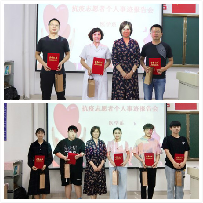活动伊始,医学系主任毕璧为优秀志愿者颁奖。随后,参加抗疫一线志愿服务的师生代表分享了个人事迹。他们用自己的亲身经历,让我们真正意识到,在疫情面前,生命的脆弱,同时也让我们感受到祖国的强大。