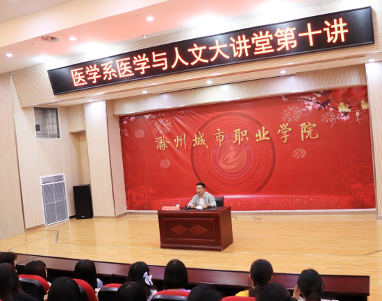 为提升医学系学生的人文素养,帮助学生更好的确定目标,选择适合自己的成才之路,医学系于2019年4月18日下午四点半在图文中心四楼报告厅顺利举行“医学与人文大讲堂第十讲”,本次讲座请到的是滁州市广慈中医门诊院长房玄,医学系2018级全体学生参加了本次讲座。