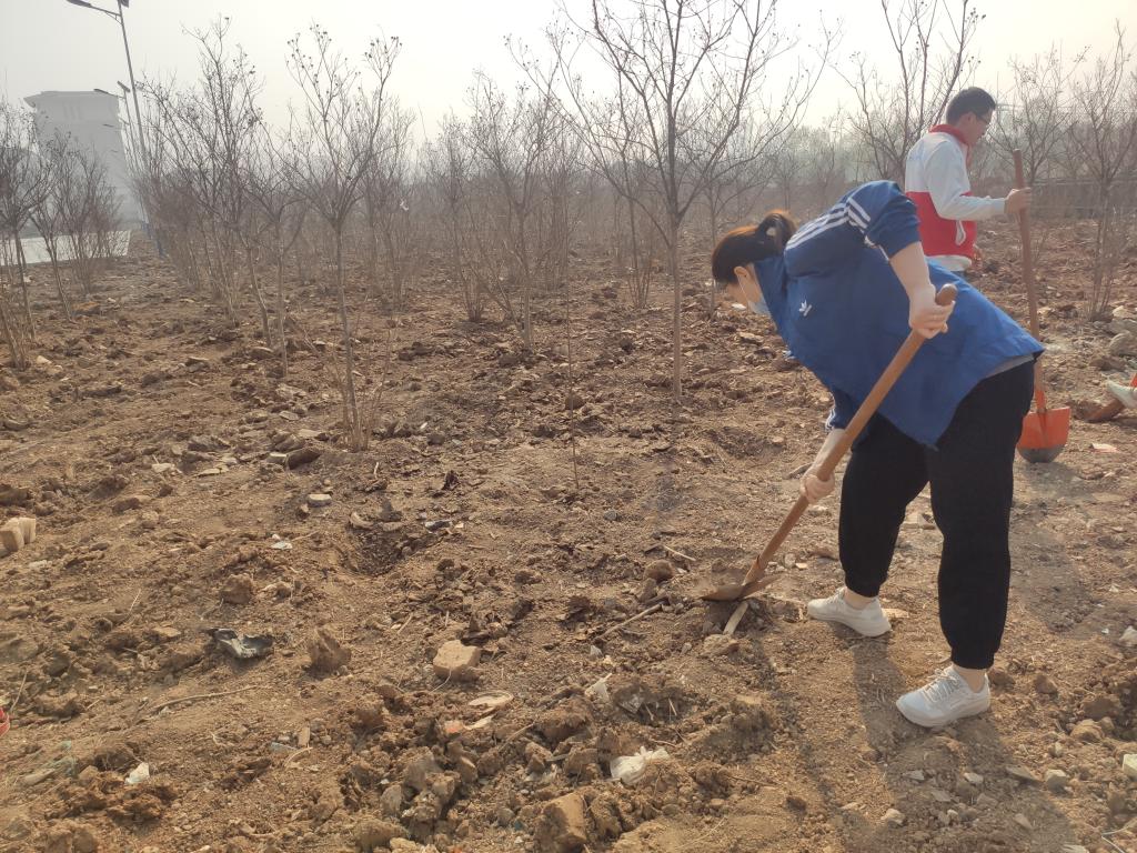 植树活动开始后,大家纷纷挽起袖子,拿起铁锹,积极投入到义务植树活动中。大家配合默契,干劲十足,或挥锹铲土,或扶苗培土,或踏土夯实,每道工序都专注细致、一丝不苟,合力栽下一棵棵树苗,一派忙碌有序的劳动场景,处处洋溢着植绿护绿的欢声笑语。在师生的共同努力下,一排排树苗昂然挺立,迎来了它们在滁城院的第一个春天,不久将成为校园里一道靓丽的风景。