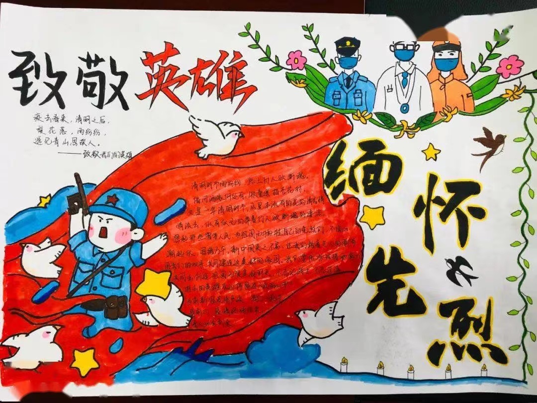 为进一步弘扬英烈事迹、传承英烈精神,教育学院团总支于近日开展了“清明节·缅怀先烈”手抄报比赛。在同学们的精心筹备下,一份份“清明节手抄报”展现在大家面前,有的突出文明祭扫主题,有的弘扬英烈精神,紧扣时代旋律,有的围绕重大事件祭扫专题并宣传在中国革命、建设、改革历史进程中献身的英雄烈士。