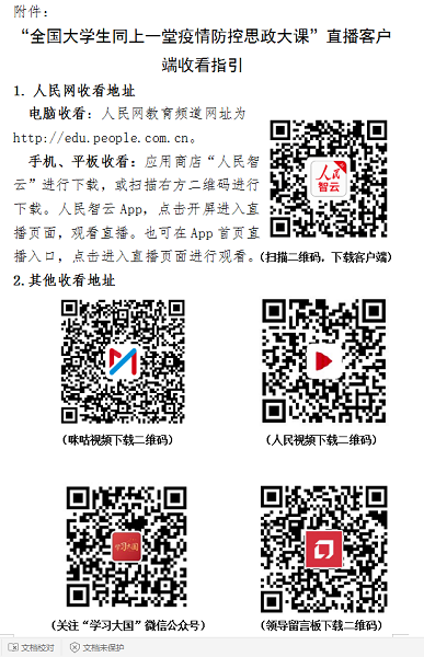 3月9日下午14:30至16:00,教育部社科司、人民网联合举办“全国大学生同上一堂疫情防控思政大课”,请认真组织本部门师生员工观看,观看时请留存照片并发至王轶老师处。QQ:303335325。