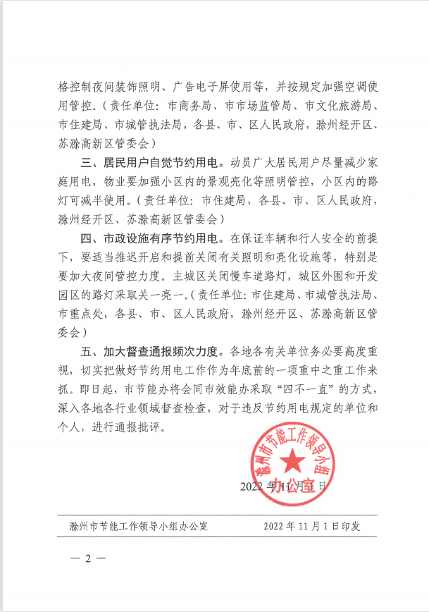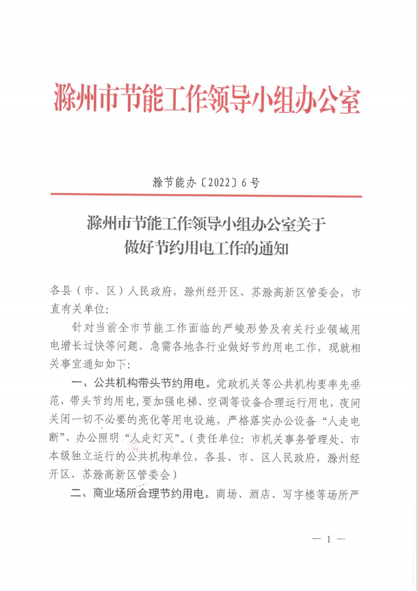 滁州市节能工作领导小组办公室关于做好节约用电工作的通知