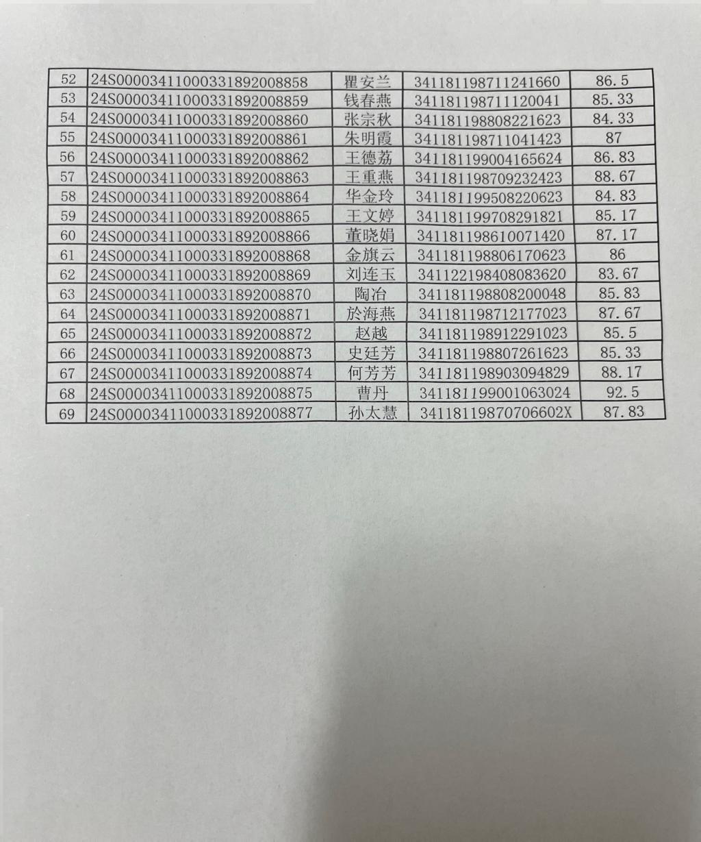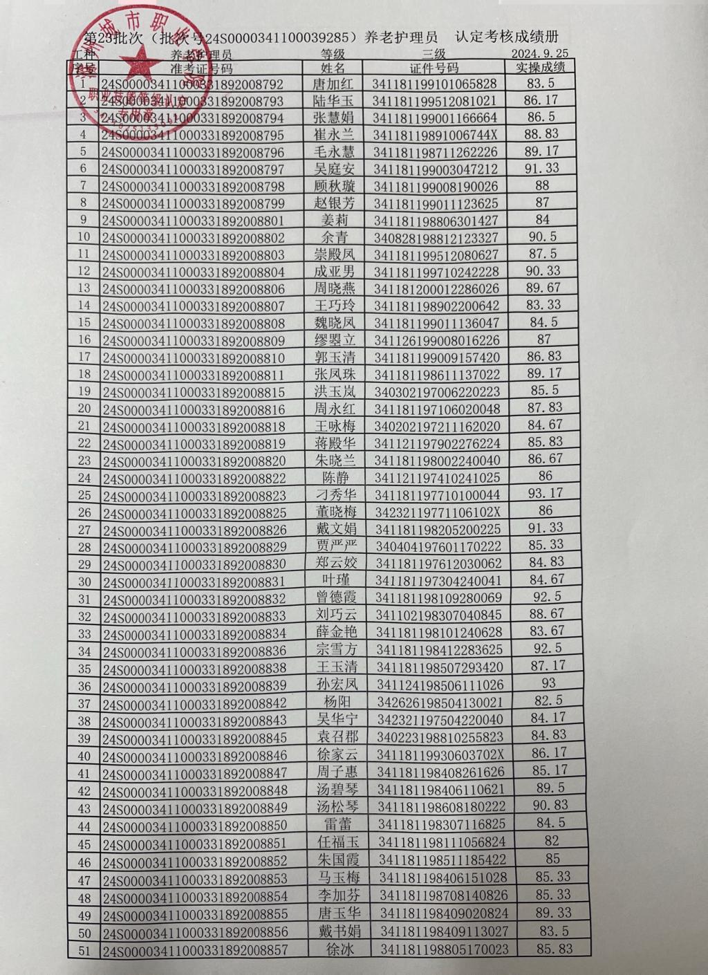 第23批次天长市中医院养老护理员(高级工)成绩公示