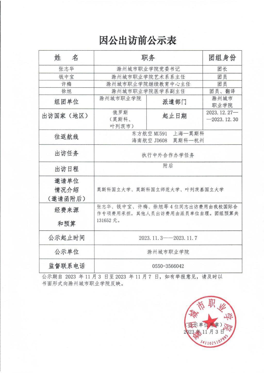 因公出访前公示表(张志华团组)-久久久一区二区三区|亚洲精品一区二区三区不|久久av网|精品国产一区二区三区久久久久久|午夜精品av|久久久久久久久久久久久久av|日韩亚洲欧美综合继续教育学院(国家职业技能鉴定站)