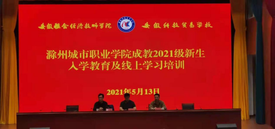 5月13日下午,为切实做好成人教育工作,继续教育中心副主任张晓杰,秘书孟红军赴蚌埠市安徽科技贸易 学校开展入学教育。该校培训部主任陈治国主持入学教育,近200名新生参加了活动。