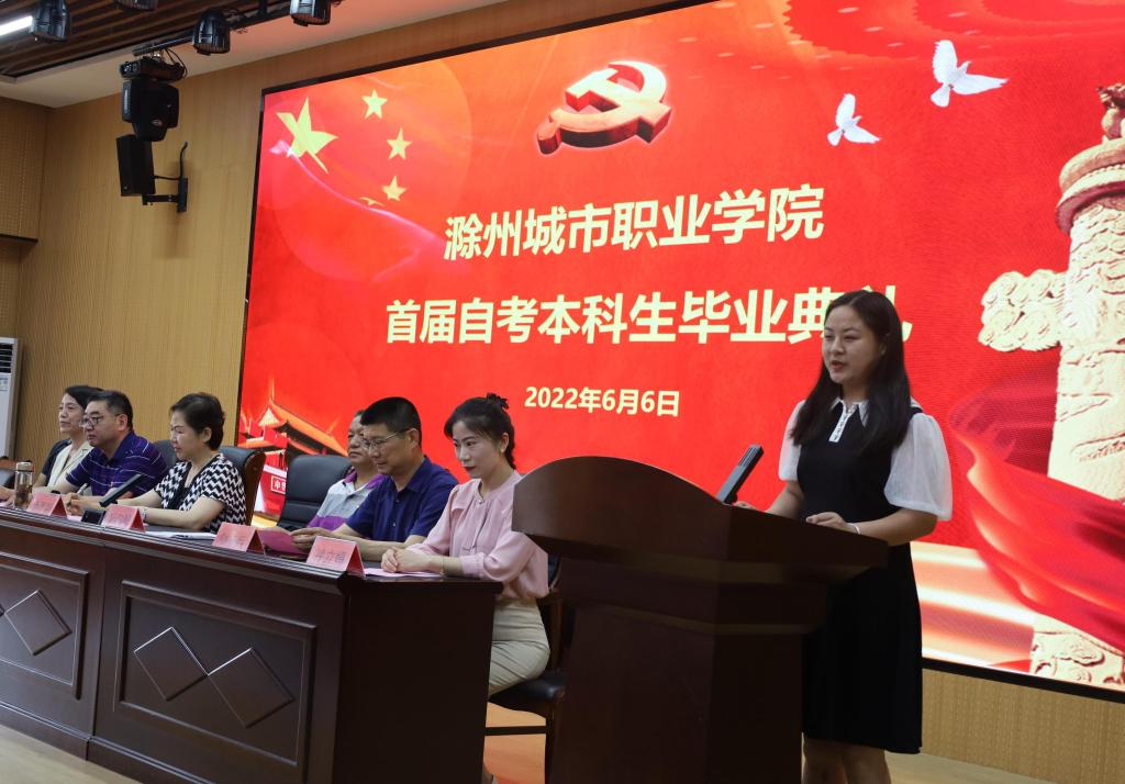 仪式上,继续教育学院副院长张晓杰说明了2022年自考毕业生相关情况,施向阳宣读2022年自考本科毕业证书颁发名单,并由与会领导现场颁发证书。郁艳雨、赵欣悦两位同学代表毕业生发言,表达了对母校培养的谢意,分享了自考过程中的心得体会和学习经验。