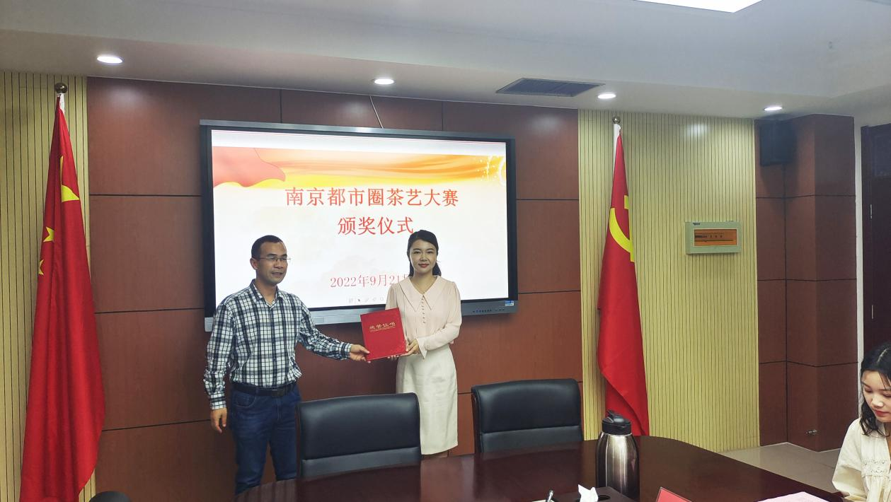 为进一步深化南京都市圈人才交流合作,促进区域技能人才一体化高质量协同发展,南京市人社局、滁州市人社局等多市人社部门共同参与,南京都市圈人社领域一体化发展办公室协助开展的2022年南京都市圈茶艺大赛落下帷幕,经学校推荐,滁州市人社局选派许方媛、夏慧、叶洪珍、张亚楠组建团队,参加此次比赛,在学校领导的高度重视下,此次比赛取得了优异的成绩。为表彰获奖选手,9月21日上午9:00,我校在图文中心第四会议室举办南京都市圈茶艺大赛颁奖仪式,党委委员、校领导施向阳、滁州市人社局副局长戴宗玉、职建科科长王华涛、鉴定中心主任姜梦莲、管理信息学院党总支书记陈兴旺参加了仪式,仪式由继续教育学院院长许梅主持。