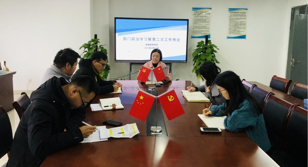 2月22日下午,继续教育学院召开本学期部门政治学习暨第二次工作例会,院长许梅、副院长孟红军及全体工作人员参加会议,会议由许梅主持。