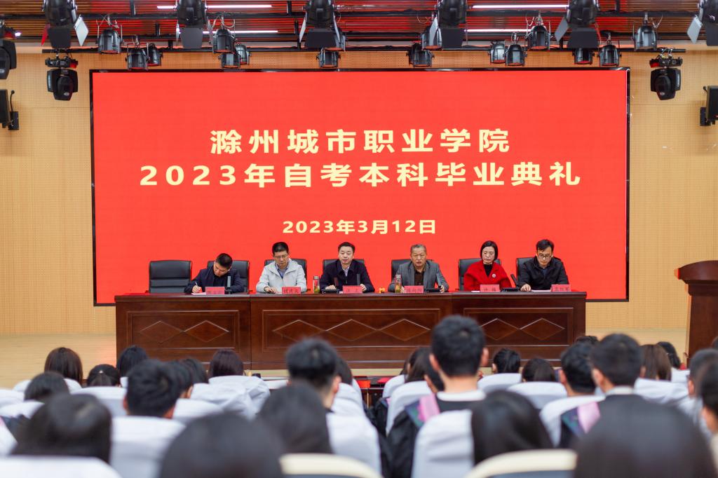 3月12日上午,我校2023年度自考本科毕业典礼在教育学院报告厅举行,党委副书记、校长汪上、党委委员施向阳、教育学院党总支书记钱庆兵、继续教育学院院长许梅、副院长孟红军、教育学院党总支副书记陈立超、自考本科毕业生代表、在校自考生代表、班主任及任课老师代表参加典礼。典礼由施向阳主持。
