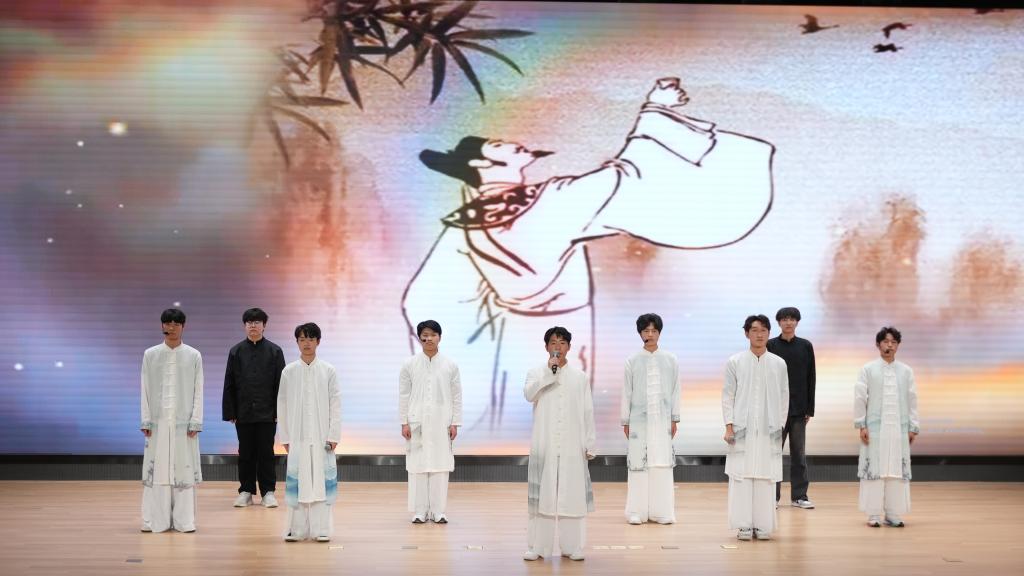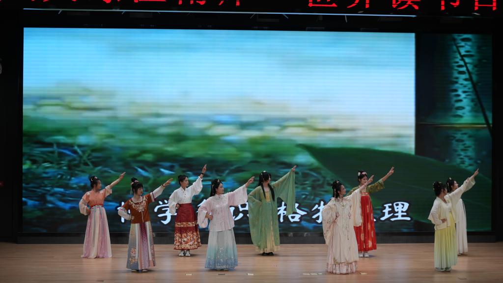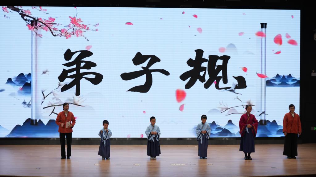 随后,师生及嘉宾带来非遗舞蹈《凤阳花鼓》、经典诵读《如果没有李白》《春江花月夜》《诗经·采薇》、亲子诵读《弟子规》、舞蹈《中华礼仪》、模特秀《水墨兰亭》《和谐中国》等表演,嘉宾们的精彩演出,赢得现场观众阵阵热烈的掌声。