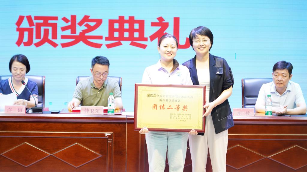 赛后于教育学院报告厅举行选拔赛闭幕式,市人社局党组成员、副局长仲卫东,市妇联党组成员、副主席吴晓丽,总工会权益保障部副部长朱良兵出席闭幕式,闭幕式由我校继续教育学院院长许梅主持。闭幕式上,仲卫东代表组委会衷心感谢我校相关部门及全体工作人员对本次比赛的辛苦付出,高度评价我校组织工作精细到位、赛事主题清晰明确,展现了卓越的组织能力,并鼓励获奖选手再接再厉,争取在省赛中再创佳绩。随后,与会领导为获奖选手及团体颁发奖项。