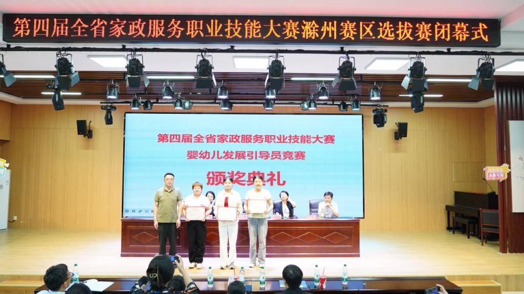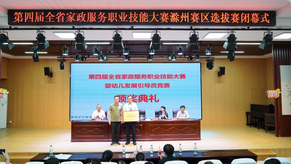 选拔赛自启动以来,各县(市、区)积极报名参赛。本次选拔赛赛共设置养老护理员、家政服务员(母婴护理员)、婴幼儿发展引导员3个竞赛项目,包括理论考试和技能实操两个环节。学校邀请资深评委担任裁判,为比赛提供权威、专业的评判,确保比赛公平、公正进行。经过严格评审,共评出一二三等奖各3名,明光市等3个单位获团体奖,定远县荣获“优秀组织奖”,我校荣获“特别贡献奖”。