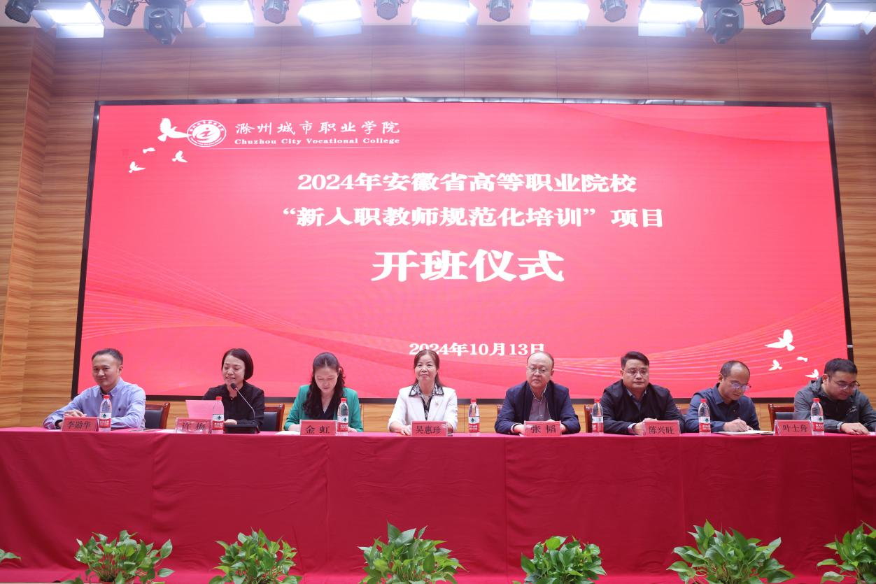 10月10日下午,由安徽省教育厅主办,我校承办的2024年安徽省高等职业院校教师素质提高计划省级配套项目(护理类、财经商贸类)新入职教师规范化培训班在我校护理学院报告厅顺利开班。安徽省高等学校师资培训中心副主任张韬,校党委委员、副校长吴惠珍,护理学院院长金虹,管理与信息学院党总支书记陈兴旺,管理与信息学院院长叶士舟,各班班主任以及来自省内高职院校50余名学员参加开班仪式。会议由继续教育学院院长许梅主持。