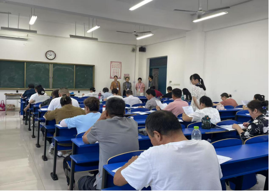 本次认定等级为初级,共有42名学员参加。考试分为理论知识和实际操作两个部分,理论考试聚焦养老护理基础知识、法律法规及职业道德等内容,检验考生对专业理论的掌握程度;实操考核则模拟真实养老场景,涵盖老年人生活照料、基础护理等实操技能,全面考察考生的综合职业能力,护理学院选派卢齐伟、杨阳、叶三宁三位老师组成考评组,对考生实操技能进行打分。巡考领导仔细查看考试组织、考场纪律等情况,强调要严格规范考试流程,确保认定工作公平公正。