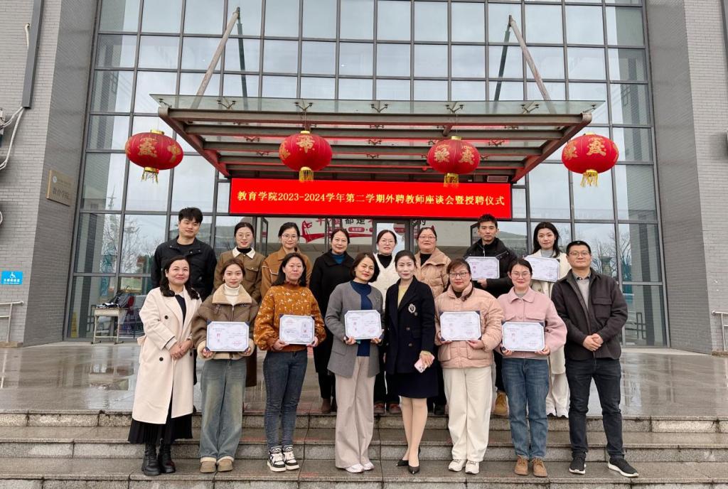 为确保新学期教育教学工作的有序推进,进一步提高教学管理规范和教学质量,3月25日下午,教育学院在C1南411召开2023-2024学年第二学期外聘教师座谈会,教育学院院长徐立娟、副院长刘明辉、副院长袁远、学前教育系系主任王李艳、小学教育系系主任郎娟娟、早期教育系系主任徐校会、七位外聘教师代表参加此次会议,会议由袁远主持。