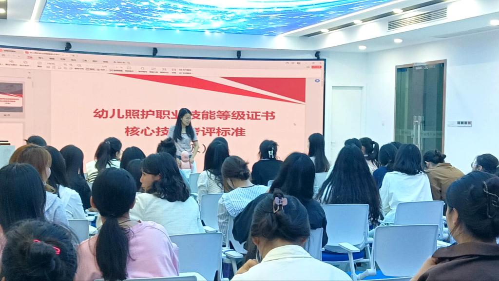 为确保考试顺利进行,教育学院开展了1+X幼儿照护职业技能等级证书(中级)技能培训。教师团队积极研讨证书对学生核心能力要求,结合岗位实际,确立考证授课内容重难点,并按照培训计划,采用线上线下混合式教学开展培训。学生通过课前看操作——课中学原理——课后练实操的学习模式,全面系统地掌握了幼儿照护相关专业知识与技能。考前,教育学院召开“1+X”幼儿照护职业技能等级(中级)证书考试考务会,对考试作具体安排。从考前动员、报名、培训到考务人员配备与培训、设备调试、组织考试等方面,精心筹备,严格按照1+X证书制度考核管理规定和要求科学部署,获得了培训评价组织的一致好评。