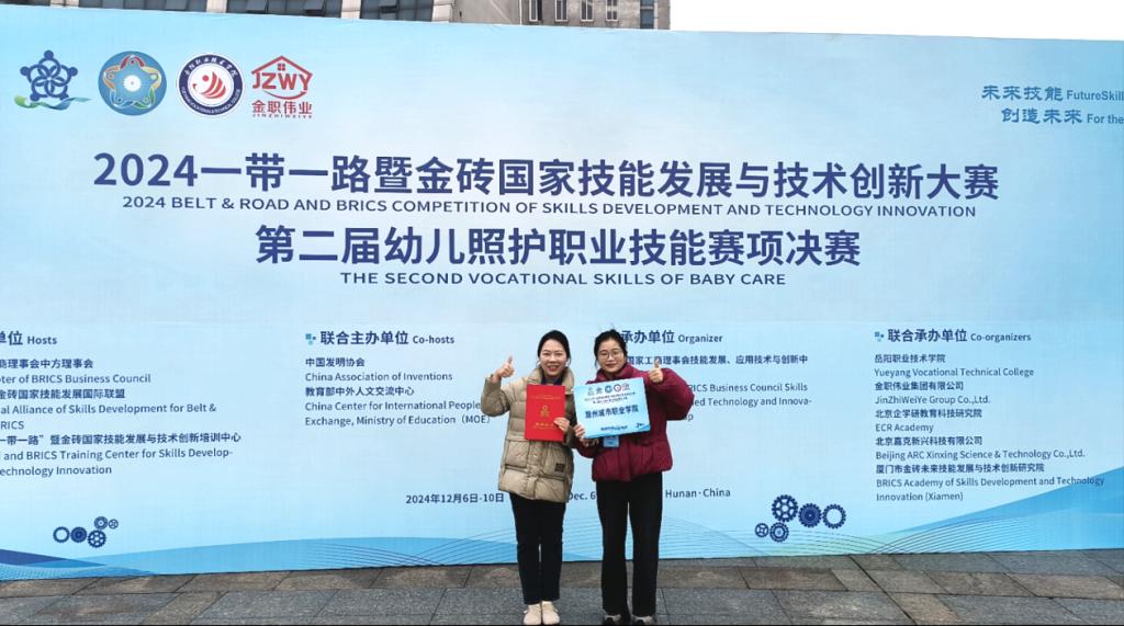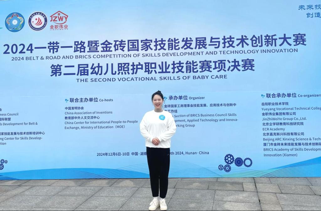 近日,2024一带一路暨金砖国家技能发展与技术创新大赛第二届幼儿照护职业技能赛项决赛在岳阳职业技术学院圆满闭幕。教育学院早期教育专业教师戴月琦在高校教师组中荣获三等奖。