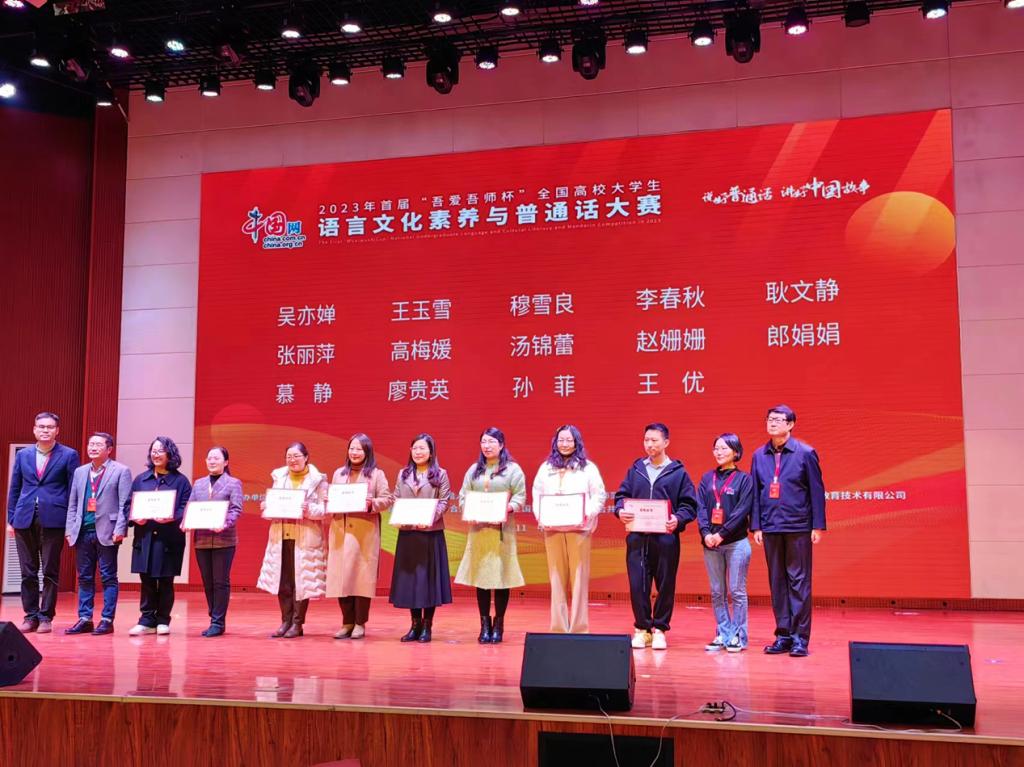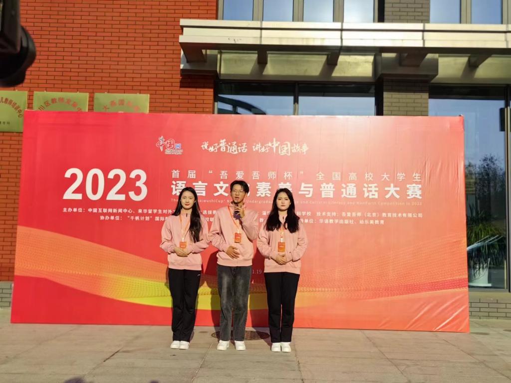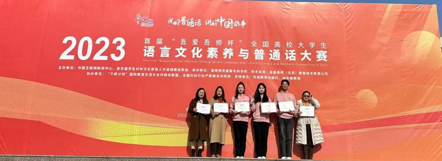 10月16日至10月19日,由山东淄博师范高等专科学校承办的2023年首届“吾爱吾师杯”全国高校大学生语言文化素养与普通话大赛决赛圆满落下帷幕。来自全国各地的49支代表队,经过四天的激烈角逐,我院来自19学前初专6班的肖若彤、21小教初专3班的詹刚、22学前高专5班的魏一凡三位同学获得全国总决赛(高职组)一等奖。(指导老师:汤锦蕾 高梅媛 郎娟娟)