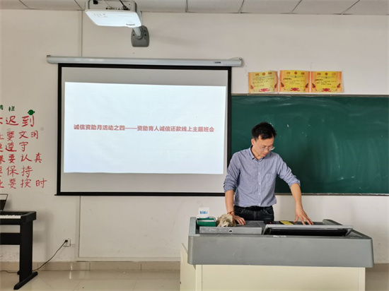 会上,杨维懂老师首先肯定了国家助学贷款政策为家庭经济困难学生带来的帮助,希望同学们珍惜个人信用记录,积极履行偿还贷款本息的义务,随时保持和学校、老师的密切联系,并特别提醒同学们需防止因工作忙碌而过失违约。其次,他强调了诚实守信的重要性,同学们不能因为不能按时偿还贷款本息而进入征信黑名单。