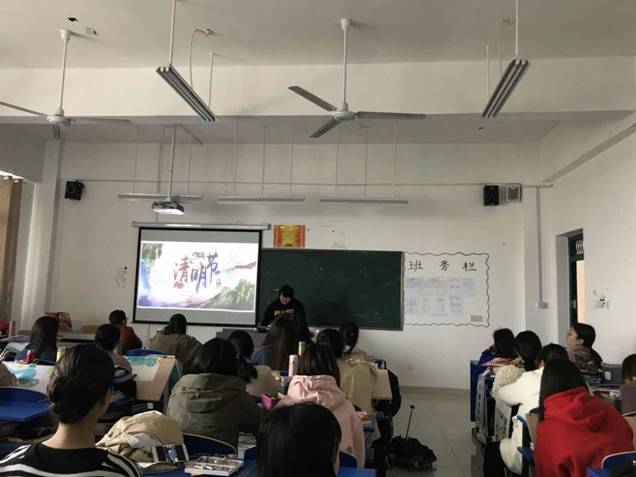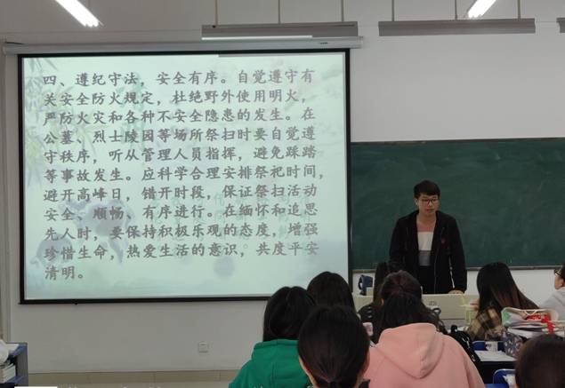 清明到,来尽孝。一年一度清明至,华夏无处不祭祀。清明是一个风清日明的节日,清明节既有怀念先人之意,也有迎接春天之味。为此教育系在节前开展祭奠英烈、文明祭扫宣传活动!教育系团总支和学生会组成宣讲团,到班级与各班同学们展开了积极互动,包括爱国诗歌的朗诵,唱爱国歌曲,看清明节的由来与习俗,调动了同学们的积极性,让同学们对清明节这一传统节日有了更深刻的认识,与此同时还展开了文明祭扫知识小竞答活动,同学们积极参与!通过宣传讨论,提醒大家在祭奠祖先的同时,要把文明祭扫谨记心中!同时各班积极开展了清明爱国主义教育,向大家宣传在祭奠先祖的同时,也要感恩英烈、祭奠英烈!