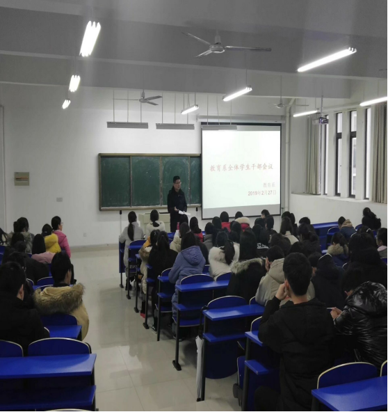 227日下午,教育系全体学生干部会议C13103教室召开。会议由系党总支副书记陈之娟主持,系主任钱庆兵出席了会议,系全体学管人员和全体学生干部参加了会议。
