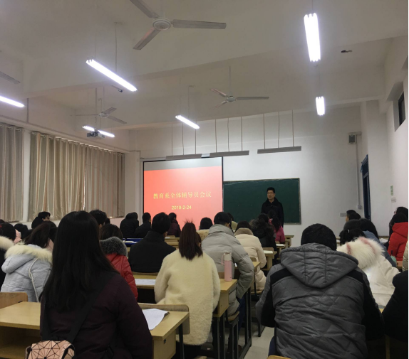 2月24日下午,教育系全体辅导员工作会议在C1南304教室召开,系党政领导班子成员及全体辅导员参加了会议。会议由系党总支副书记陈之娟主持。