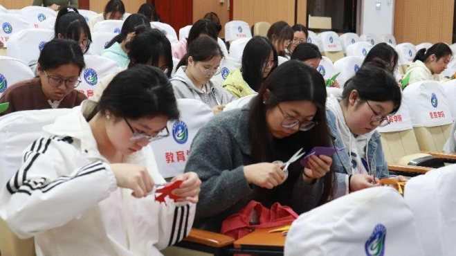 一张彩纸、一把剪刀,“指尖乾坤”绘就珍贵艺术品。非遗剪纸项目的开展,不仅让我院师生领略了剪纸艺术的独特魅力,也让大家更加深度理解了传承与弘扬优秀传统文化的意义。教育将持续深入推进非遗剪纸文化的学习,把“巧手剪纸”融入美育理念,努力探索和创新内涵发展新途径,提升教师专业素养,促进学生全面发展。(文:王静 图:黄正顺)