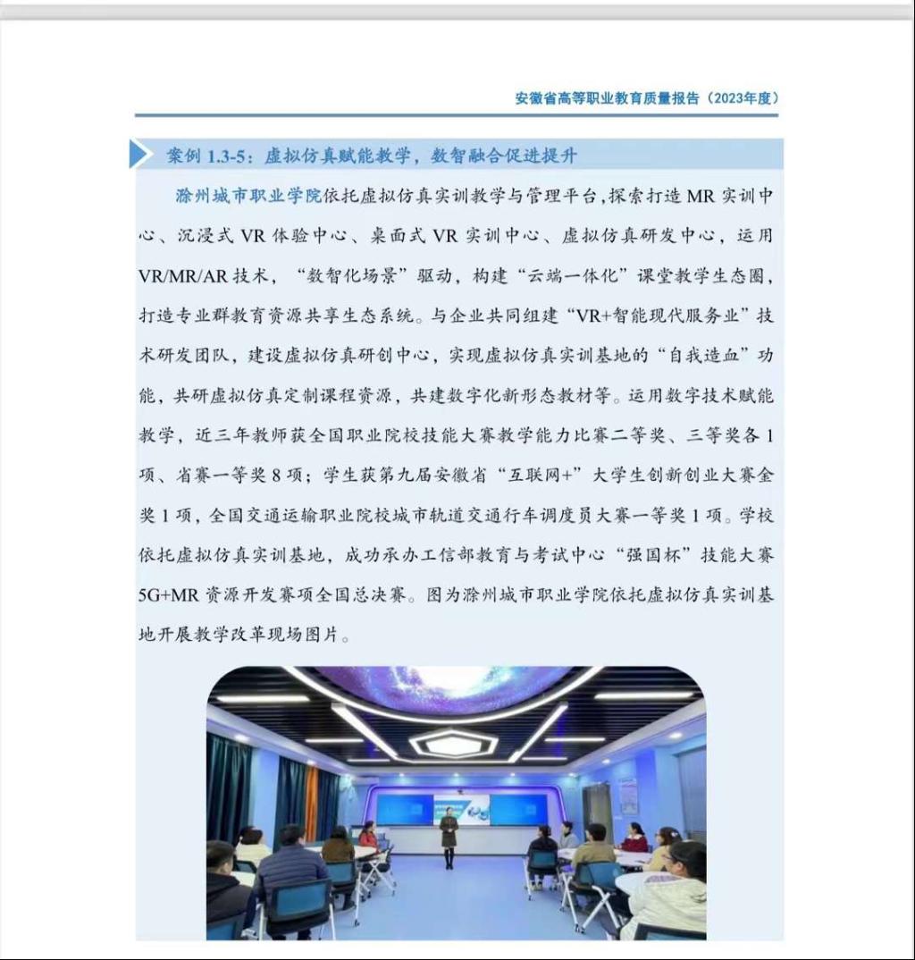喜报:教育学院学前教育MR虚拟仿真实训中心案例入选《安徽省高等职业教育质量报告(2023年度)》