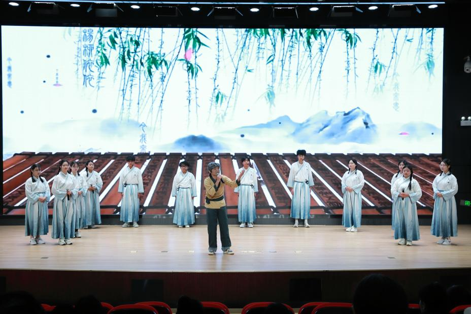值得一提的是,多个节目融入了创新元素。有的结合了情景剧,在诵读时重现时代背景,演绎仁人志士对山河的赤诚热爱。有的同学身着汉服,在悠扬音乐伴奏下还原《小雅·采薇》中从军将士艰辛的生活和思归的浓烈情怀。有的选手直接化身醉酒的诗仙,步伐踉跄,语调顿挫,嗓音激昂,将“天生我材必有用,千金散尽还复来”的自信与不羁展现得淋漓尽致,引得台下掌声雷动。
