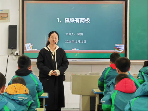 课堂伊始,何然老师以磁铁有什么本领的问题为导入,点燃了同学们的好奇心与求知欲,大家纷纷踊跃参与讨论。在何老师的巧妙引导下,同学们通过磁铁的吸铁能力的深入探究,逐渐揭开了知识的神秘面纱。随后,在何老师的指导下,在一次次的猜测与尝试中,学生们不仅领悟到了磁铁有两极的奥秘,还体会到了科学知识在生活实践中的重要应用,深感科学的奇妙与魅力。