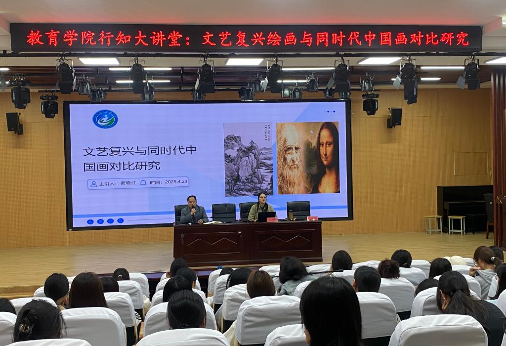 为强化美育教育,探索“五育融合”新路径,教育学院于4月23日在学院报告厅举办行知大讲堂,带来了一场以“文艺复兴绘画与同时代中国画对比研究”为主题的报告。本次讲堂由衡晓红老师主讲,教育学院党总支书记刘亮出席活动并主持。
