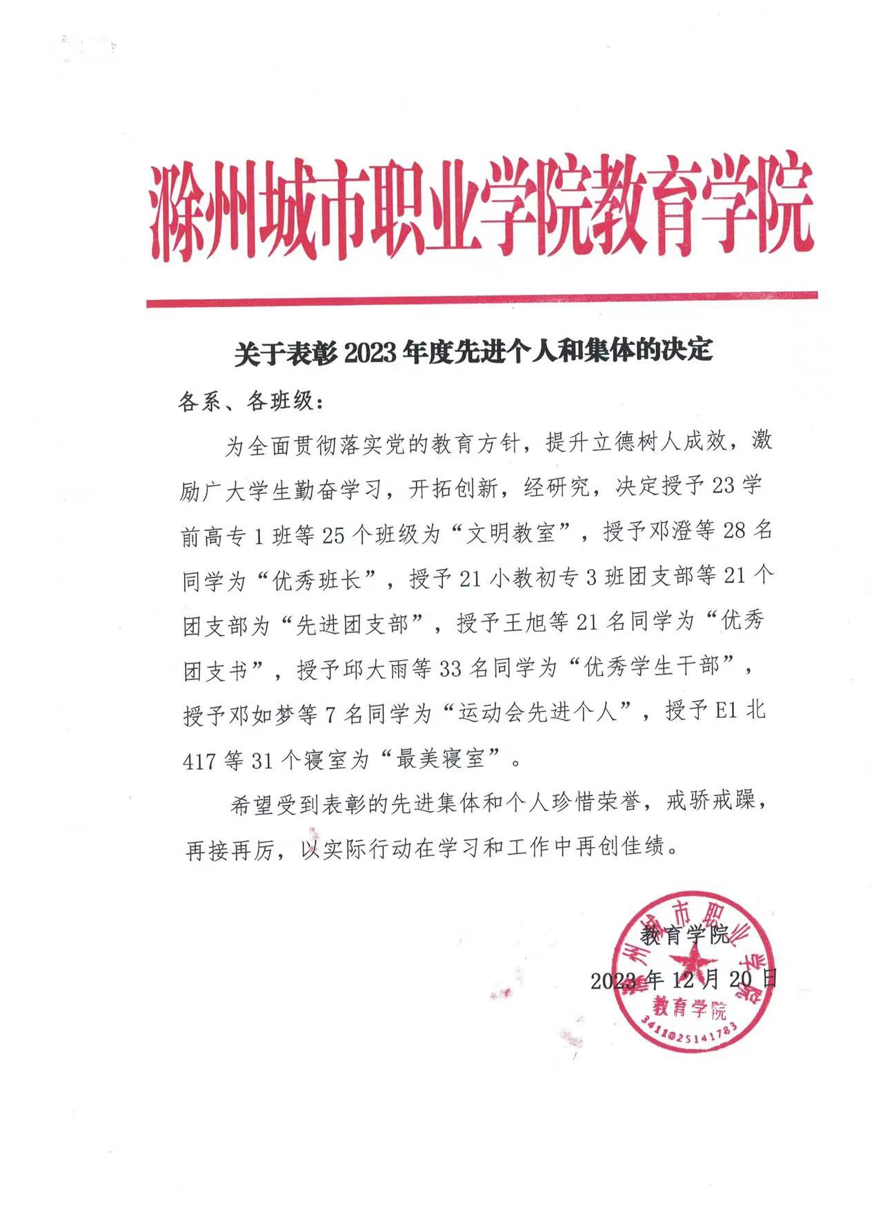 上一条:教育学院关于做好2023-2024学年第一学期期末集中考试安排的通知 下一条:关于李玉婷等31位同学参加2023年安徽省职业技能大赛停课的通知