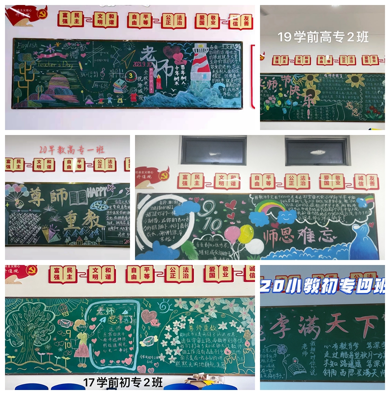 19学前高专8班,同学们亲手制作精美贺卡送给老师,一张张贺卡上都是诚挚的心意。20小教高专1班举办“老师,您辛苦了”主题活动,深情讲述师生故事。20小教初专2班、19学前高专7等班级写下对老师的祝福......另有一些班级举办感恩主题交流会,说说心目中的好老师,分享师生趣事,表达感恩之情。通过此次活动,加强了学生们对老师的理解和尊敬,让我们深深感受到了老师的默默耕耘,无私奉献的品质。
