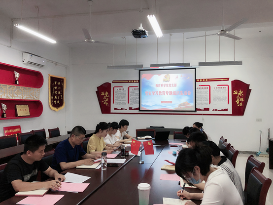 根据学院党委《关于召开党史学习教育专题组织生活的通知》要求,教育系学生党支部于2021年8月11日在C1南411办公室了召开党史学习教育专题组织生活会,会议紧扣“学党史、悟思想、办实事、开新局”的主题,认真贯彻“学史明理、学史增信、学史崇德、学史力行”的要求。支部全体党员参加了此次会议。