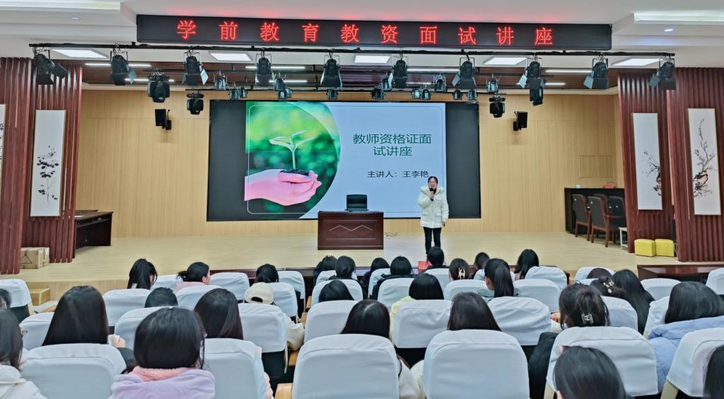 为深入学习贯彻习近平新时代中国特色社会主义思想,帮助我系学子全面了解教师资格证面试流程及应考技巧,增强考试信心,提高教师资格证面试通过率。11月30日晚上,教育学院教工党支部书记王李艳在C2北教育学院报告厅召开了教师资格证面试讲座,义务为学前教育系19学前初专学生提供面试辅导服务。