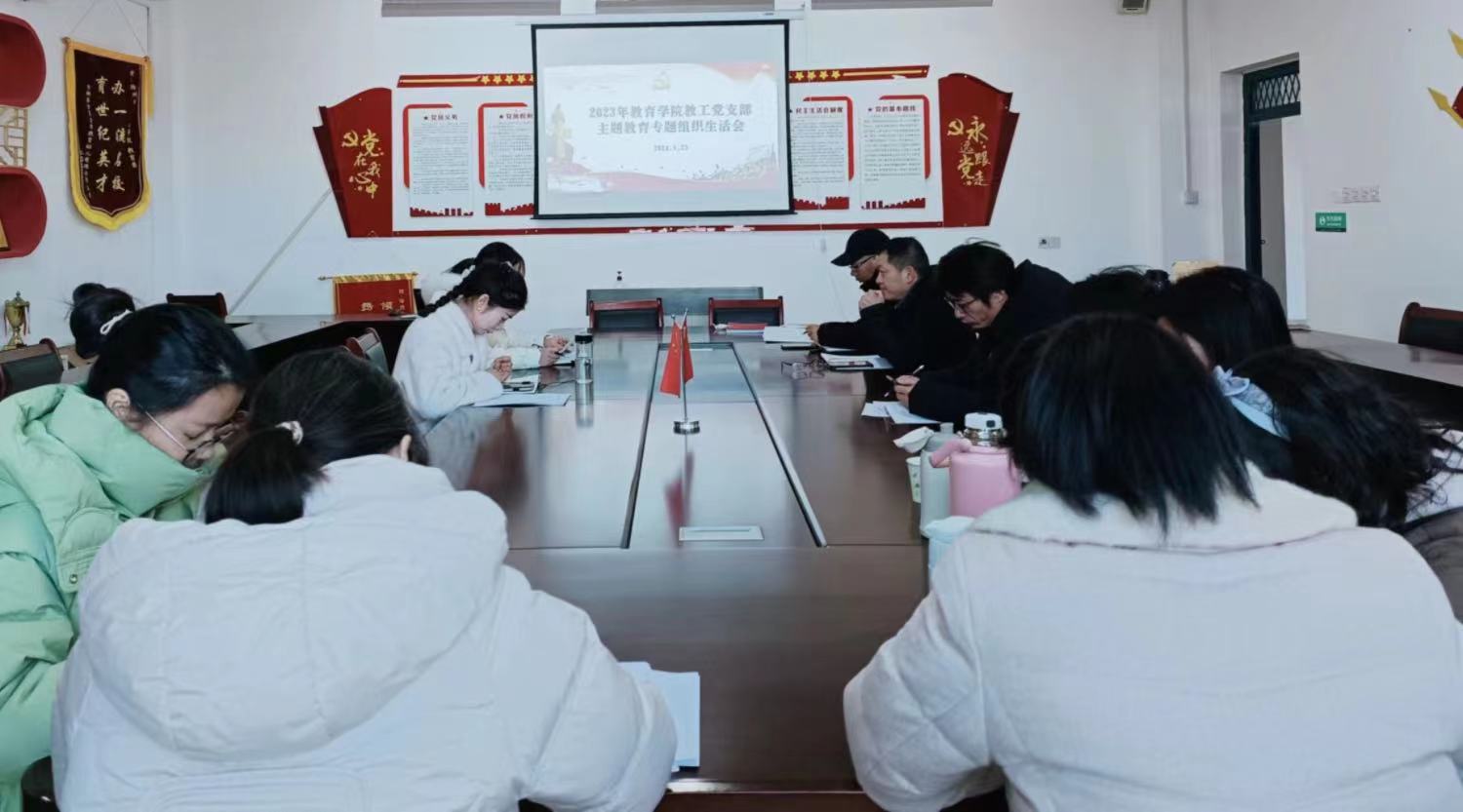 为扎实推进学习贯彻习近平新时代中国特色社会主义思想主题教育走深走实,1月23日下午,教育学院教工党支部在C1南411召开了主题教育专题组织生活会暨民主评议党员大会。会议由教工党支部书记王李艳主持,教工党支部全体党员参加。
