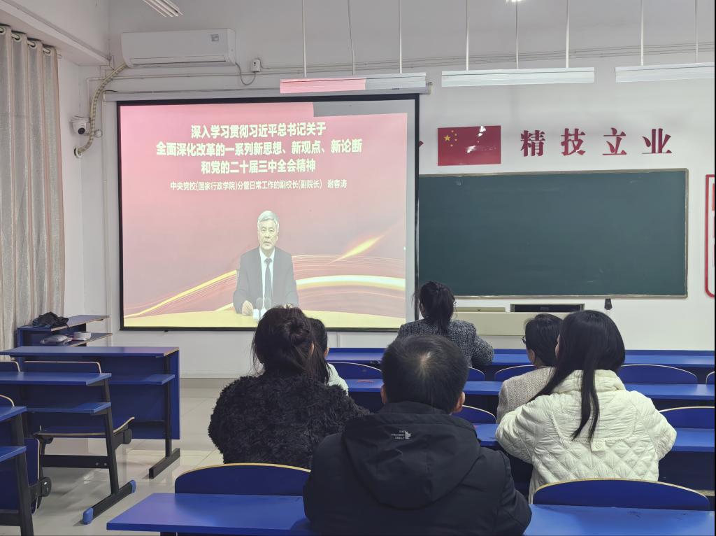 谢春涛同志从“党的二十届二中全会以来党和国家事业取得的重大成就”“党的二十届三中全会主题的由来与重大意义”“进一步全面深化改革的重要性和必要性”“习近平总书记关于全面深化改革的一系列新思想、新观点、新论断”“进一步全面深化改革的重大原则”“进一步全面深化改革的重大举措”六个方面对党的二十届三中全会进行了深入解读。