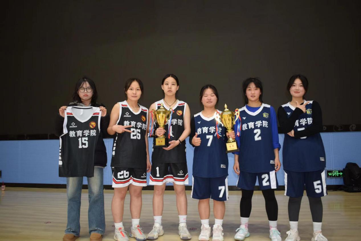 在近日结束的学校“强国有我”篮球赛中,教育学院的女子1队和男子队分别夺得了冠军和亚军,女子2队获得了季军的好成绩,展现出了教育学院的体育风采和团队实力。