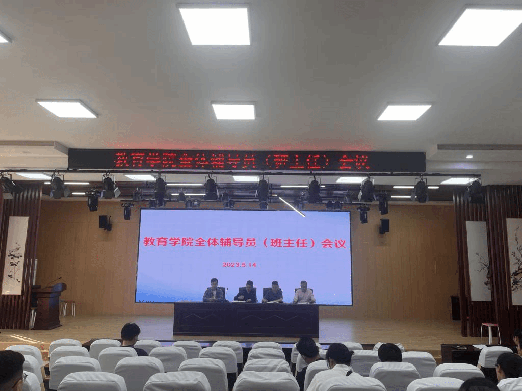 为加强学院的学风建设,发挥班辅导员(班主任)合力育人,更好地发挥教师在学生成长和成才中的指导作用,实现“全员育人、全方位育人、全过程育人”的目标,教育学院于2023年5月14日下午,召开全体辅导员(班主任)工作会议。钱庆兵、陈立超、黄正顺、钟久海及全体辅导员(班主任)参加会议。此次会议由陈立超主持。