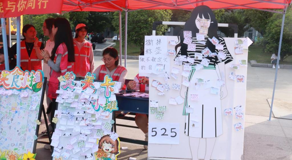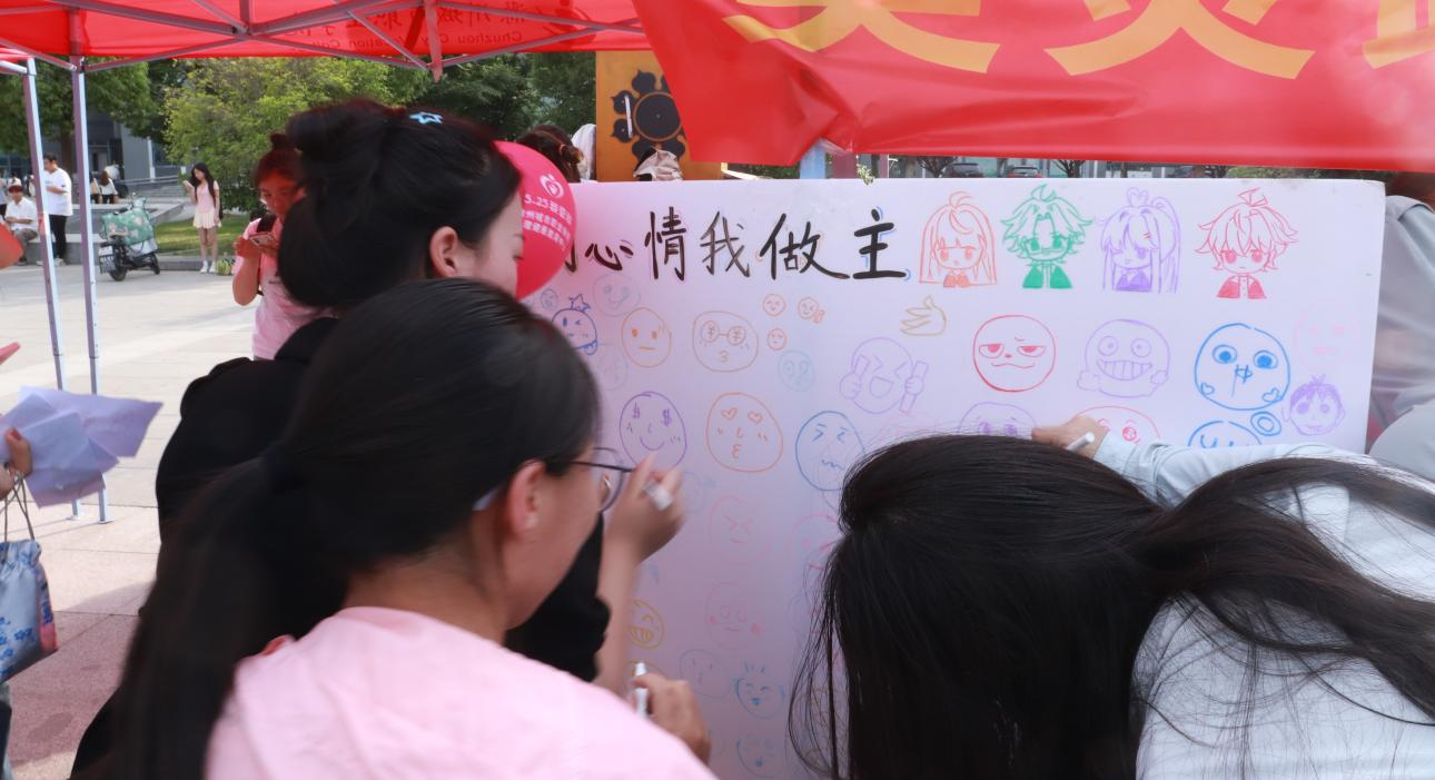 教育学院围绕积极促进大学生心理健康,设置了包括人际互动、自我认知、人格解析、情绪管理、自我接纳、压力释放六个主题展台。各展台精心设计了互动游戏、趣味体验和宣传讲解等特色活动。“爱的抱抱”展台旨在拉近彼此心与心的距离,勇敢自信地表达爱;“赞美卡小摊”展台让同学们以欣赏的视角看待他人,悦纳自己;“多巴胺美食小摊”展台让同学们分享美食及生活,定格春天的美好;“我的心情我做主”展台邀请同学们用色彩描摹内心,走进自我探索的旅程;“拒绝定义”展台邀请同学们撕掉标签,做不被定义的自己;“绿野心踪”展台让同学们将绿植带回家,拉近与自然的距离。