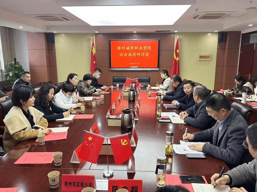 为深入落实教育部办公厅《关于开展全国高校书记校长访企拓岗促就业专项行动的通知》文件精神,进一步拓展学生就业新空间,深化校校(园)合作,推进毕业生就业,3月23日下午,教育学院与滁州市实验幼儿园、第一幼儿园、第二幼儿园、实验小学、琅琊路小学、会峰小学、全椒智慧宝贝、来安艺树幼儿园、映彩泓幼儿园等21家用人单位在图文中心第四会议室开展访企拓岗研讨会。校党委副书记、校长汪上、党委委员施向阳、招生就业处处长朱启来,教育学院领导班子成员出席会议,会议由施向阳主持。