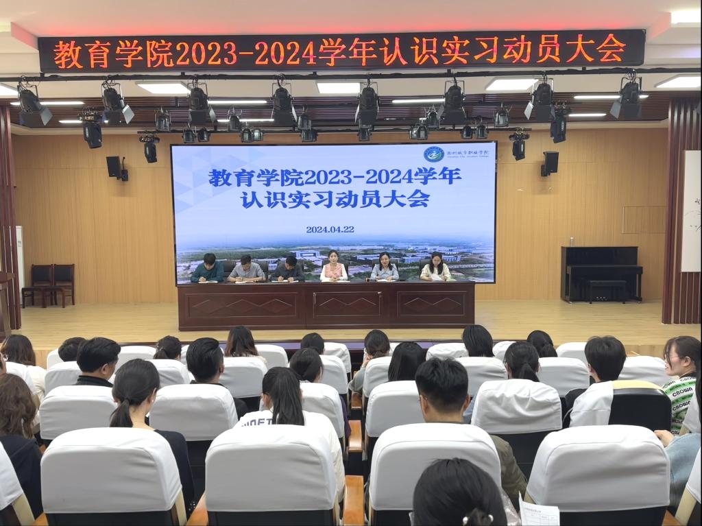 为做好2023-2024学年教育学院学生认识实习工作,引导学生做好实习前的各项准备,4月22日下午教育学院在报告厅召开了认识实习动员大会,教育学院院长徐立娟、党总支副书记陈立超、副院长袁远、全体辅导员(班主任)、认识实习指导教师参加会议,会议由袁远主持。