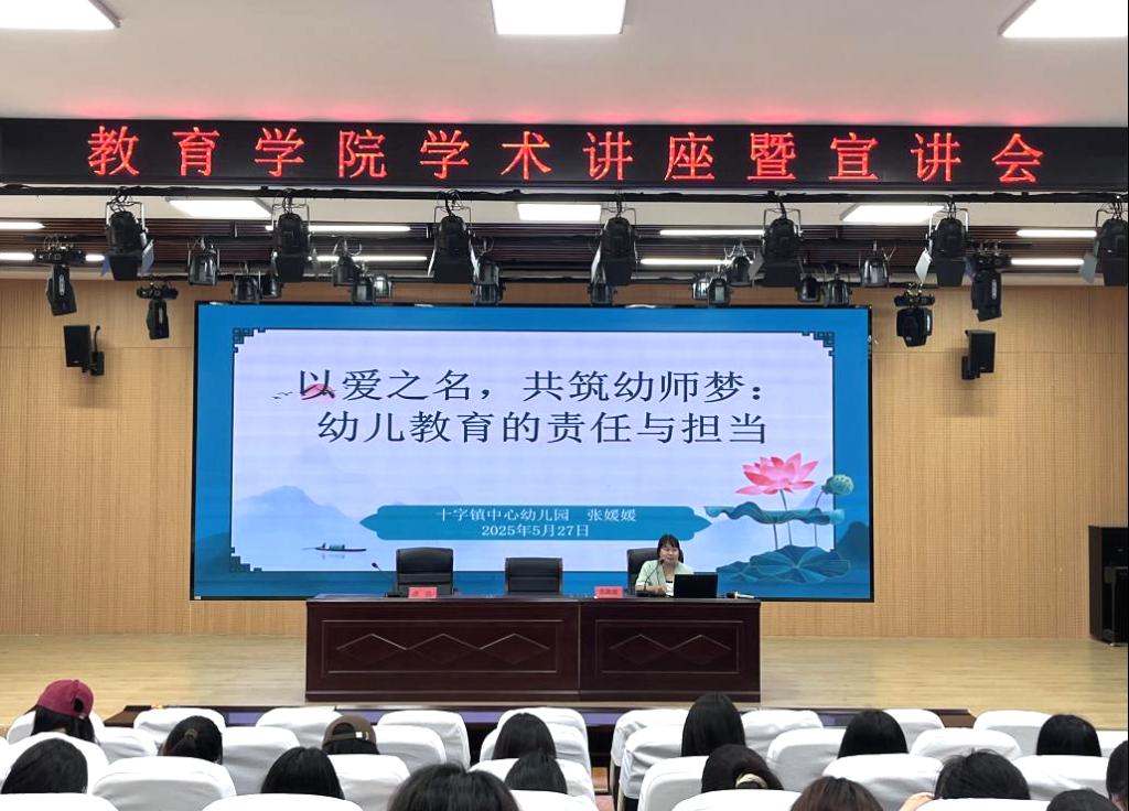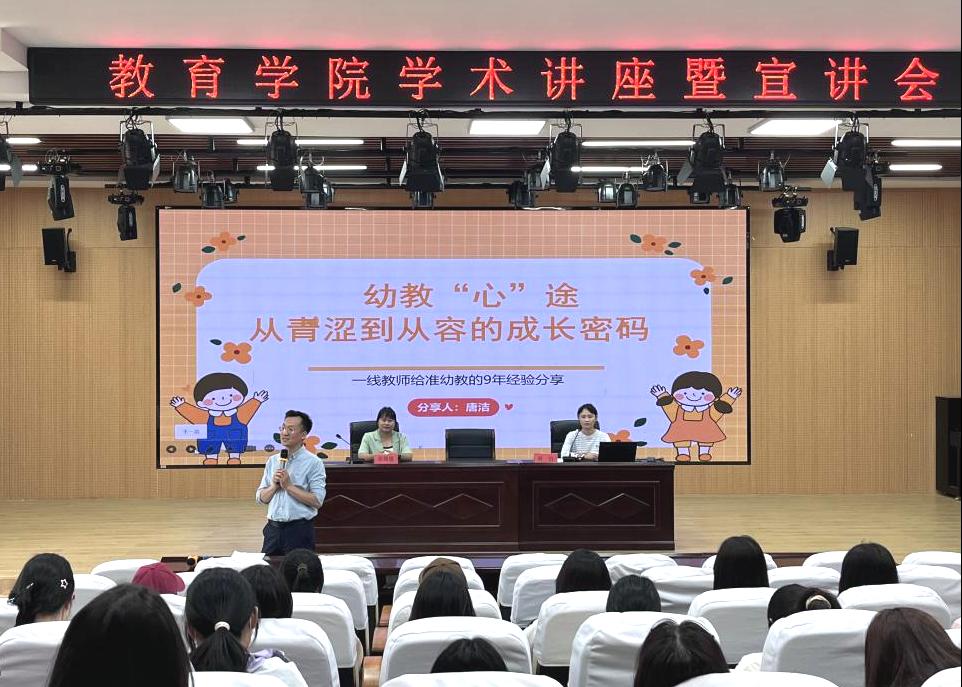 为进一步提升学前教育人才培养质量,紧密对接行业前沿需求,开拓优质就业渠道,教育学院于5月27日在报告厅举办幼教专题讲座暨就业宣讲会。全椒县十字镇中心幼儿园保教主任张媛媛与唐洁担任主讲嘉宾,2023级学前教育专业136位学生参加。