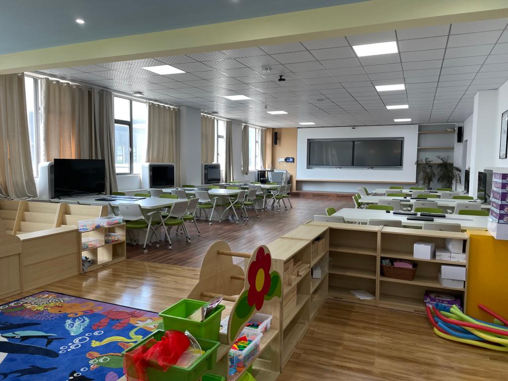 其中201教育研习室可供教师教研、学生研讨以及校企远程教学使用。采用现代化装修设计,信息化水平较其他实训室有较大提高,特别是我们的远程教学系统,可以连线跟我们有深度合作的幼儿园或者早教机构互动教学。我们可以观摩对方上课,对方的专家也可以指导我们的学生实操。203技能竞赛工作室也是综合实训室,主要用于学生技能训练,包括教师教学教学能力,这个实训室里面也有录播系统。205早教多功能室是专业实训室,主要面对早期教育专业,开展亲子活动设计课程、乐高课程等。智慧教室是现代理实一体实训室。在教室的前边有教学研讨区,教室的后边有幼儿园模拟实训区。学生可以在教室前面进行研讨,后面可以进行实训模拟。