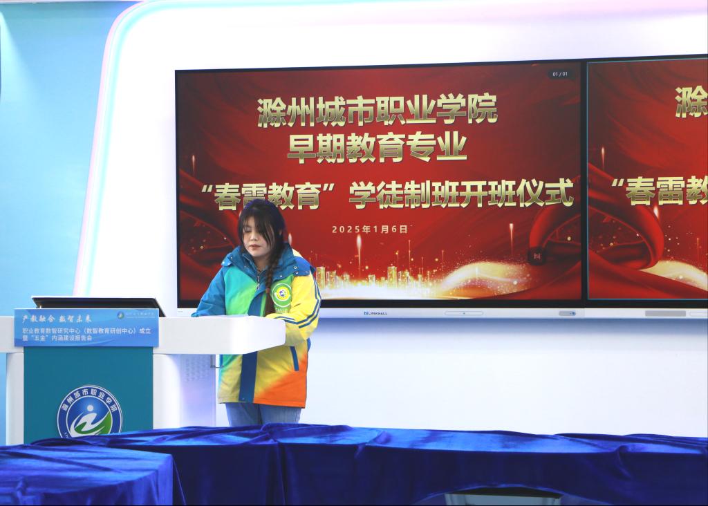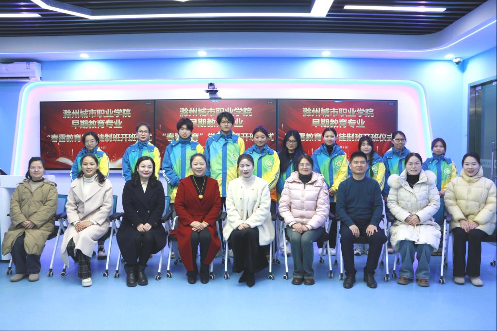 为进一步深化产教融合、校企合作,提升人才培养质量,构建早期教育专业与企业紧密相连的人才价值关系链,助力学生更好就业,1月6日下午,我院与滁州市春雷教育信息咨询有限公司成功举行了早期教育专业“春雷教育”学徒制班签约暨开班仪式。滁州市春雷教育信息咨询有限公司董事长袁修凤、教育学院院长徐立娟、系主任、专业负责人、早期教育专业学徒制班班主任及全体学员出席仪式。副院长袁远主持会议。